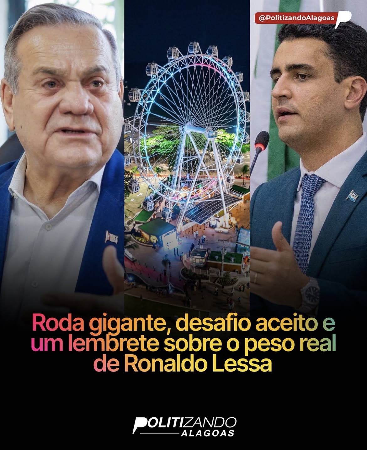 A troca entre o prefeito JHC e o vice-governador Ronaldo Lessa sobre a roda gigante parecia só mais uma brincadeira nas redes. Até deixar de ser. Porque um provocou, o outro respondeu e, no fim, o prefeito aceitou o desafio.